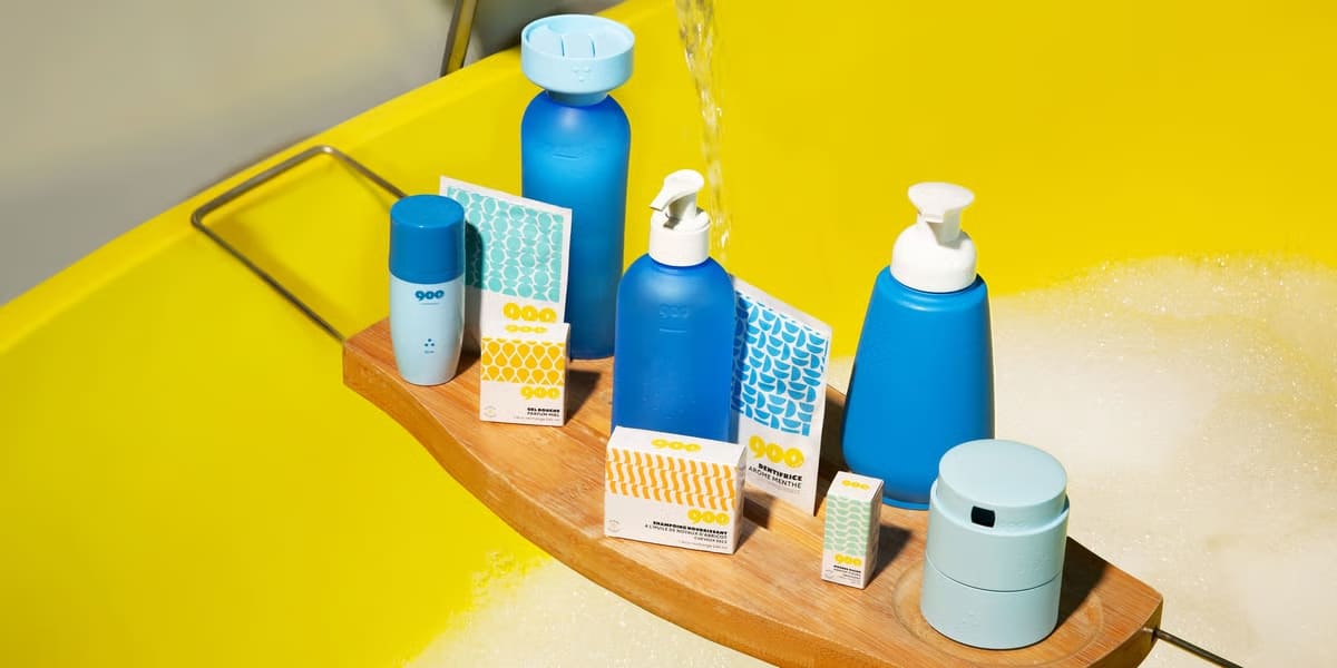 Créée en août 2019 et commercialisée en décembre 2021, 900.care est une marque de produits d’hygiène rechargeables qui emploie 25 salariés. Nous vendons nos produits en ligne et on se bat contre le plastique à usage unique et le transport inutile d’eau. Nos gels douche émettent 6x moins d’émissions de C02 que les produits traditionnels, c’est 5x moins sur l’ensemble de notre gamme.